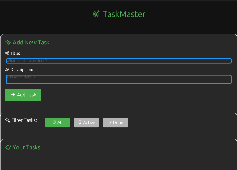- Smart Filtering: View all tasks, active tasks, or completed tasks
